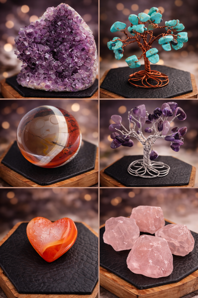 En Elestial trabajamos con piedras naturales cuidadosamente seleccionadas por su belleza, origen y significado. Cada pieza, ya sea un cuarzo, una joya artesanal o un árbol de la vida, representa una conexión entre la naturaleza y el mundo interior.